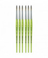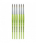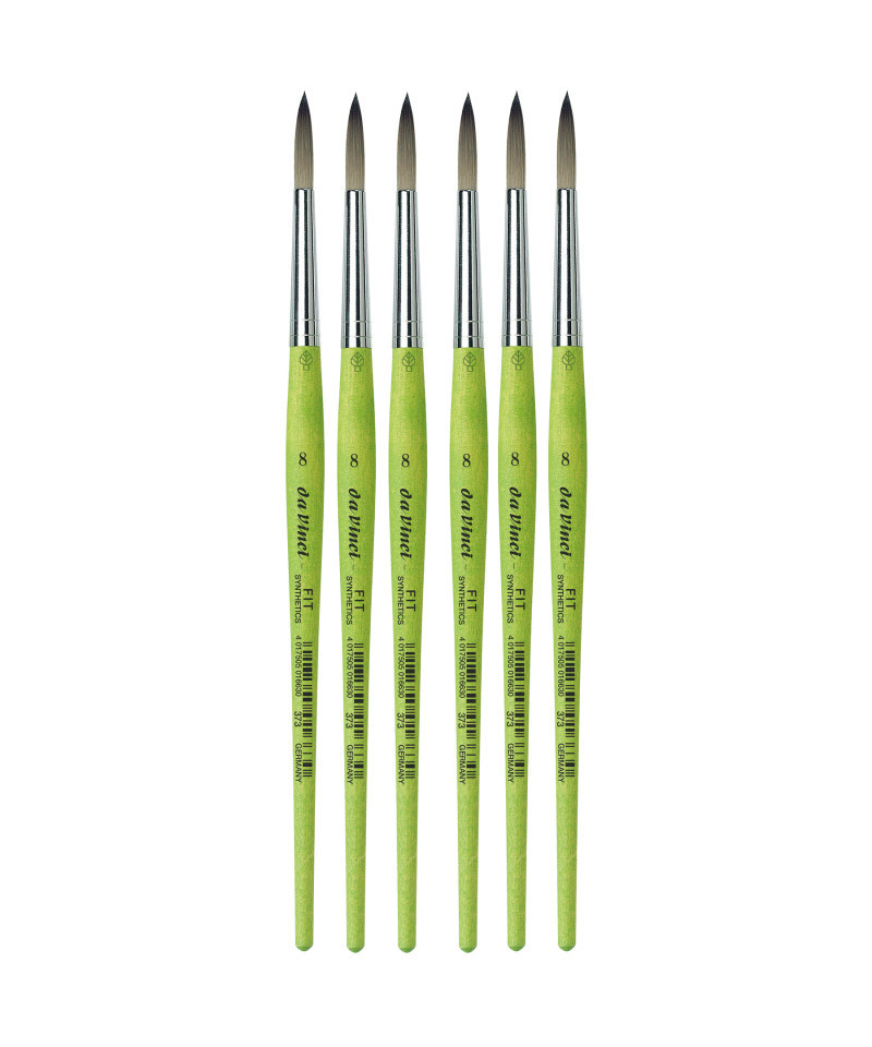 Thanks to a specifically developed, flexible, grey synthetic fiber we have created a hobby and school painting brush, which fascinates not only by its interesting look but also by its attractive price. This innovative product offers better performance than the traditional school brush with natural hair when it comes to stroke control and color absorbing capacity. The brush features a green, matte handle with seamless, rust-proof aluminum ferrules. Made in Germany. 100% Vegan. Sold as a pack of 6.