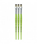 Thanks to a specifically developed, flexible, grey synthetic fiber we have created a hobby and school painting brush, which fascinates not only by its interesting look but also by its attractive price. This innovative product offers better performance than the traditional school brush with natural hair when it comes to stroke control and color absorbing capacity. The brush features a green, matte handle with seamless, rust-proof aluminum ferrules. Made in Germany. 100% Vegan. Sold as a pack of 3.