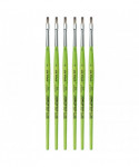 Thanks to a specifically developed, flexible, grey synthetic fiber we have created a hobby and school painting brush, which fascinates not only by its interesting look but also by its attractive price. This innovative product offers better performance than the traditional school brush with natural hair when it comes to stroke control and color absorbing capacity. The brush features a green, matte handle with seamless, rust-proof aluminum ferrules. Made in Germany. 100% Vegan. Sold as a pack of 6.