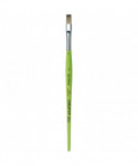 Thanks to a specifically developed, flexible, grey synthetic fiber we have created a hobby and school painting brush, which fascinates not only by its interesting look but also by its attractive price. This innovative product offers better performance than the traditional school brush with natural hair when it comes to stroke control and color absorbing capacity. The brush features a green, matte handle with seamless, rust-proof aluminum ferrules. Made in Germany. 100% Vegan.