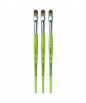 Thanks to a specifically developed, flexible, grey synthetic fiber we have created a hobby and school painting brush, which fascinates not only by its interesting look but also by its attractive price. This innovative product offers better performance than the traditional school brush with natural hair when it comes to stroke control and color absorbing capacity. The brush features a green, matte handle with seamless, rust-proof aluminum ferrules. Made in Germany. 100% Vegan. Sold as a pack of 3.