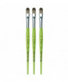 Thanks to a specifically developed, flexible, grey synthetic fiber we have created a hobby and school painting brush, which fascinates not only by its interesting look but also by its attractive price. This innovative product offers better performance than the traditional school brush with natural hair when it comes to stroke control and color absorbing capacity. The brush features a green, matte handle with seamless, rust-proof aluminum ferrules. Made in Germany. 100% Vegan. Sold as a pack of 3.
