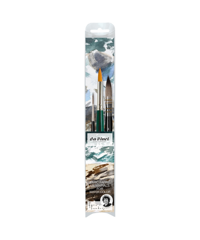 This 3 brush set for watercolor painting is recommended by the well-known Spanish watercolorist Cesc Farré. This Signature Set contains da Vinci CASANEO Series 1290 Size 4 and Series 498 Size 4 brushes as well as a NOVA Series 5575 Size 12 brush.
