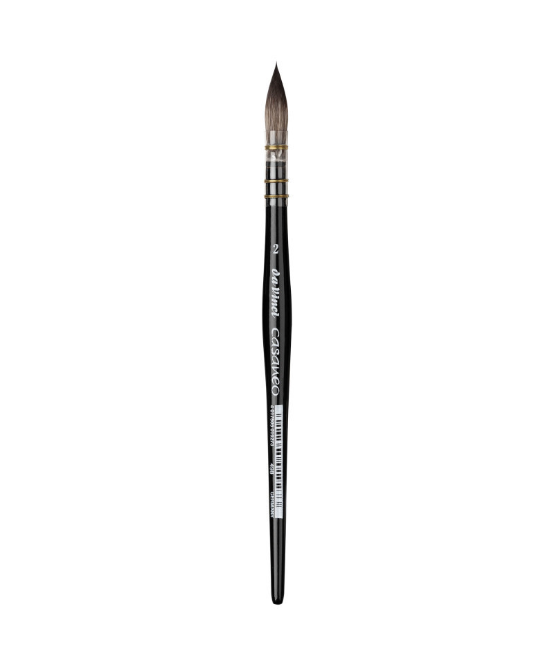 CASANEO is a new "wavy" fiber synthetic developed by da Vinci for water media artists. Manufactured from extra smooth, slightly wavy synthetic fibers, CASANEO replicates the feel of natural squirrel hair but comes to a better point. This special construction allows the fibers to absorb a huge amount of water & color delivering an endless brush stroke. Ideal for watercolor, gouache, fluid acrylics & ink painting. This series features a watercolor brush with extra long hair, traditionally bound, extra long perfectly shaped tip. Due to the traditional wire binding, this model is more elastic in comparison to standard riggers and also best suited for calligraphy techniques. Made in Germany. 100% Vegan. Handles are from sustainable forests in the Baltic states. Eco friendly manufacturing.