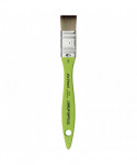 Thanks to a specifically developed, flexible, grey synthetic fiber we have created a hobby and school painting brush, which fascinates not only by its interesting look but also by its attractive price. This innovative product offers better performance than the traditional school brush with natural hair when it comes to stroke control and color absorbing capacity. Thanks to the DUROPLUS technique this mottler is especially long-lasting. The brush features a green, matte handle with seamless, rust-proof aluminum ferrules. Made in Germany. 100% Vegan.