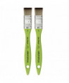 Thanks to a specifically developed, flexible, grey synthetic fiber we have created a hobby and school painting brush, which fascinates not only by its interesting look but also by its attractive price. This innovative product offers better performance than the traditional school brush with natural hair when it comes to stroke control and color absorbing capacity. Thanks to the DUROPLUS technique this mottler is especially long-lasting. The brush features a green, matte handle with seamless, rust-proof aluminum ferrules. Made in Germany. 100% Vegan. Sold as a pack of 2.