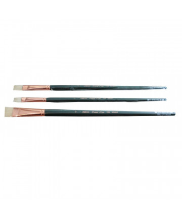 Thanks to a specifically developed, flexible, grey synthetic fiber we have created a hobby and school painting brush, which fascinates not only by its interesting look but also by its attractive price. This innovative product offers better performance than the traditional school brush with natural hair when it comes to stroke control and color absorbing capacity. Thanks to the DUROPLUS technique this mottler is especially long-lasting. The brush features a green, matte handle with seamless, rust-proof aluminum ferrules. Made in Germany. 100% Vegan.