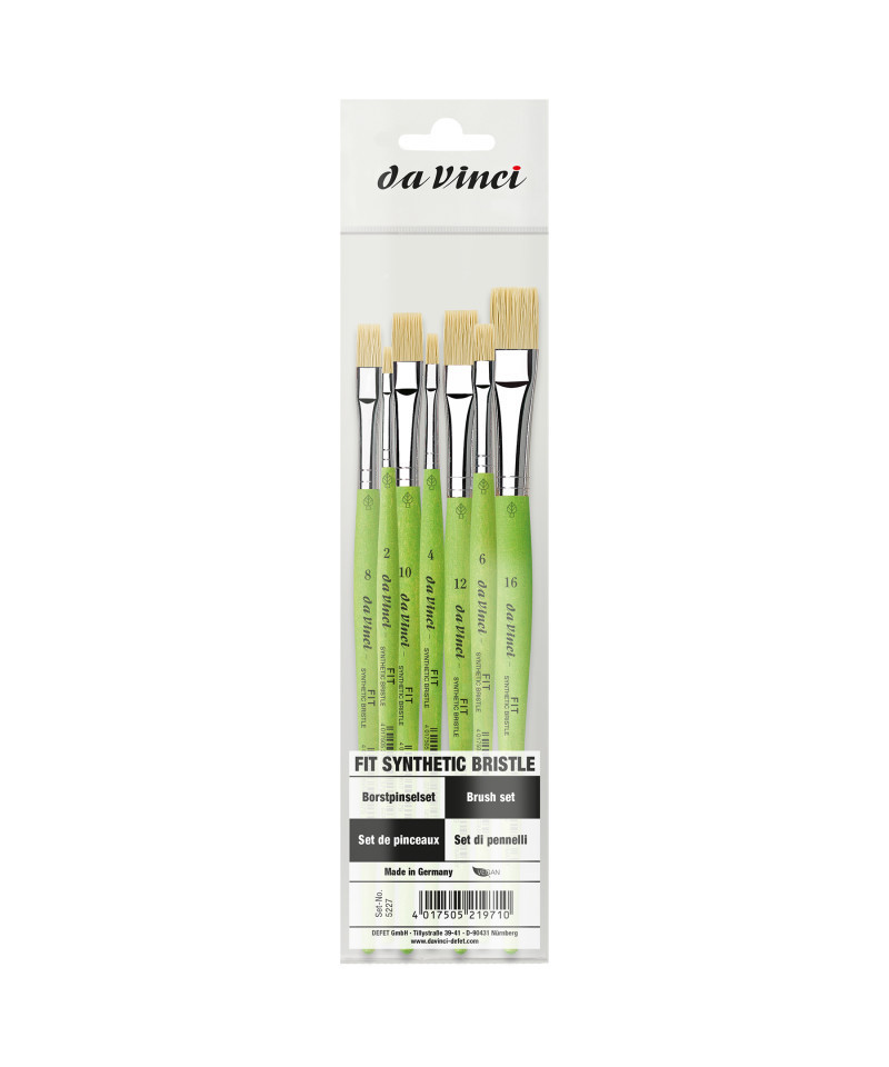 Thanks to a specifically developed, flexible synthetic fiber we have created a hobby and school painting brush assortment, which fascinates not only by its interesting look but also by its attractive price. This innovative product offers better performance than the traditional school brush with natural hair when it comes to stroke control and color absorbing capacity. Made in Germany. 100% Vegan. This set contains: Series 379 Size 2 , 4 , 6 , 8 , 10 , 12 and 16.