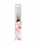 NOVA golden synthetic brushes for all paints & painting techniques - in many different shapes. This line has been one of our best-seller for decades. Our well-known mix of synthetic fibers of 3 different diameters with a high color absorbing capacity for smooth and even strokes. Certified green manufacturing with sustainable wood handles handmade in Germany at our family owned factory since 1890. 100% Vegan. This set contains: Series 1570 Size -3, 0, 2, 4 and 6.