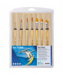 da Vinci Junior art brushes are a well built, easy to use brush developed to improve the quality of brushes for beginners. They can be used with any type of paint and are easy to clean. The "hold it like a pencil" handle shape makes for a comfortable and familiar grip. The brush won't roll away if dropped. It has a reinforced brush head for heavy wear that will always hold its edge. Unlike most cheaper brushes, da Vinci junior features a "rust resistant" seamless polished ferrule. Made in Germany. Sustainable wood handles. Vegan. Eco-Friendly. This set contains: Series 303 Size 2, 6, 10 and 12 as well as Series 304 Size 4, 8, 10 and 12.