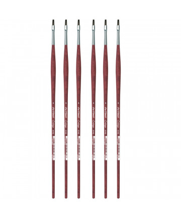 CASANEO is a new "wavy" fiber synthetic developed by da Vinci for water media artists. Manufactured from extra smooth, slightly wavy synthetic fibers, CASANEO replicates the feel of natural squirrel hair but comes to a better point. This special construction allows the fibers to absorb a huge amount of water & color delivering an endless brush stroke. Ideal for watercolor, gouache, fluid acrylics & ink painting. CASANEO Series 5599 features an inlaid, extra long needle-sharp tip from COLINEO synthetic fibers brush body from fibers made to hold large amount of color. The brush has a short, black, polished, hexagonal handle. Made in Germany. 100% Vegan. Handles are from sustainable forests in the Baltic states. Eco friendly manufacturing.