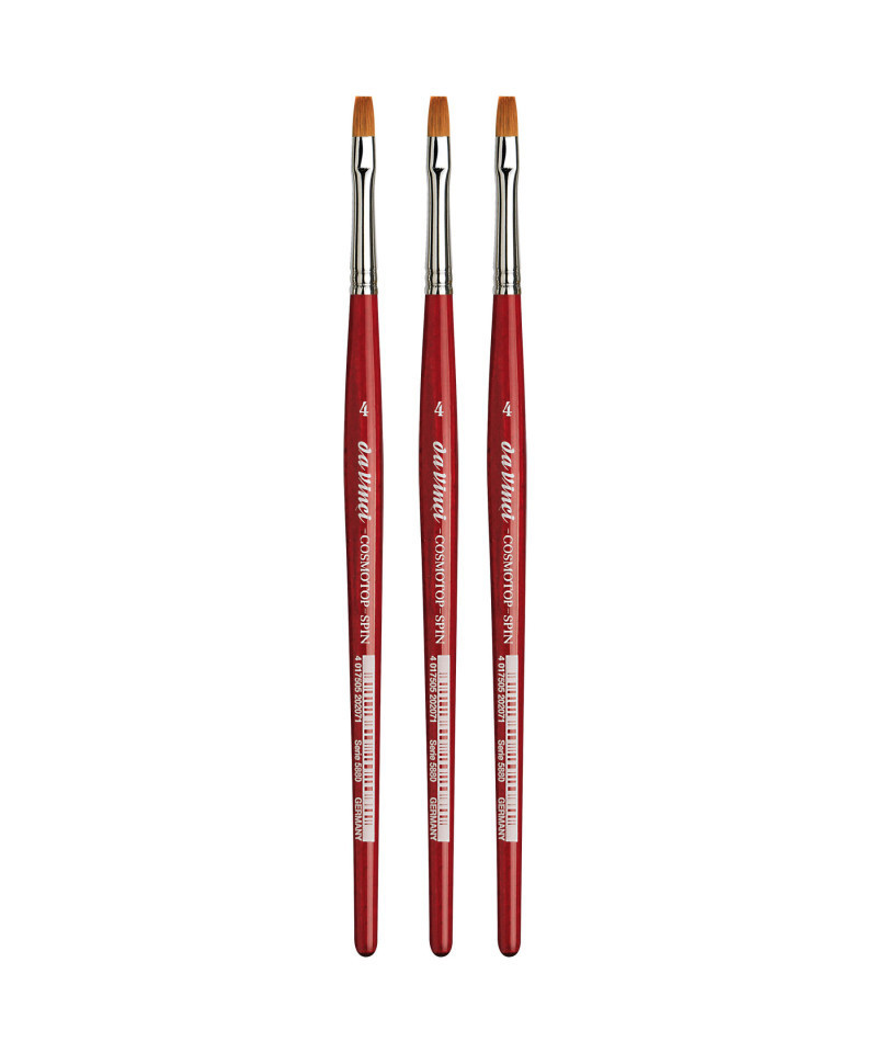 da Vinci COSMOTOP-SPIN Silkpainting Brush, Synthetic, Watercolor, Flat, Size 4, Pack of 3