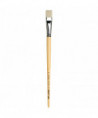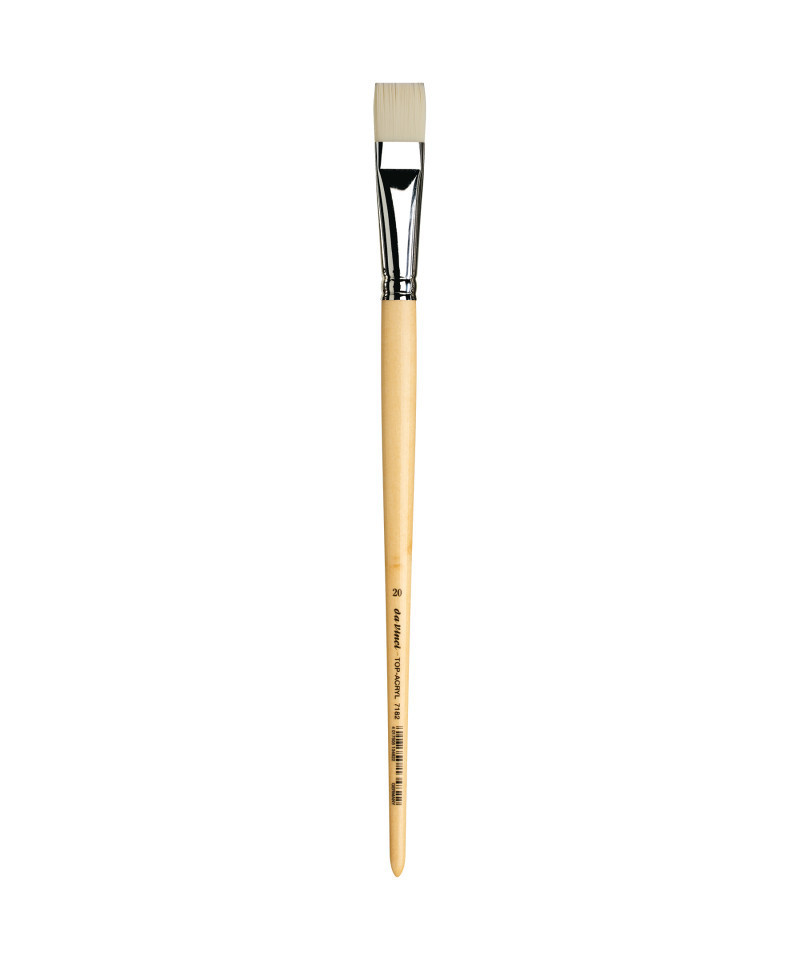 Extra strong and stiff for acrylics, oils & water-mixable oils TOP-ACRYL is constructed with 5 different diameters of extra strong Synthetic Bristle. Long handles fit right in your painting box or travel easel. Exclusive design developed by da Vinci. Extra stiff with a precise snap, and a favorite of Impasto painters (who use thick applications of paint). Whether massing color in the larger sizes or precision painting in the smaller sizes, TOP-ACRYL brushes offer the artist versatility and ruggedness. The brush features a long, natural, polished handle.