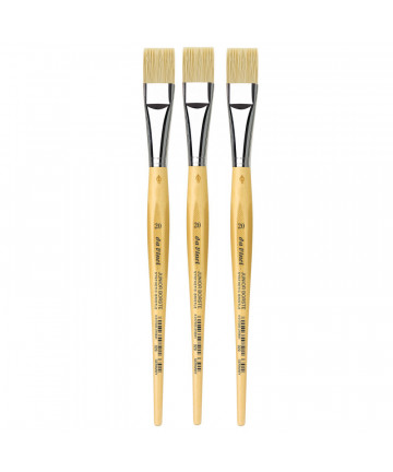 Extra strong and stiff for acrylics, oils & water-mixable oils TOP-ACRYL is constructed with 5 different diameters of extra strong Synthetic Bristle. Long handles fit right in your painting box or travel easel. Exclusive design developed by da Vinci. Extra stiff with a precise snap, and a favorite of Impasto painters (who use thick applications of paint). Whether massing color in the larger sizes or precision painting in the smaller sizes, TOP-ACRYL brushes offer the artist versatility and ruggedness. The brush features a long, natural, polished handle.