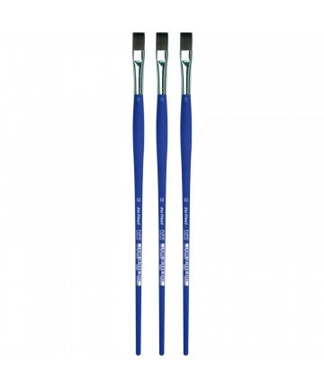 Extra strong and stiff for acrylics, oils & water-mixable oils TOP-ACRYL is constructed with 5 different diameters of extra strong Synthetic Bristle. Long handles fit right in your painting box or travel easel. Exclusive design developed by da Vinci. Extra stiff with a precise snap, and a favorite of Impasto painters (who use thick applications of paint). Whether massing color in the larger sizes or precision painting in the smaller sizes, TOP-ACRYL brushes offer the artist versatility and ruggedness. The brush features a long, natural, polished handle.
