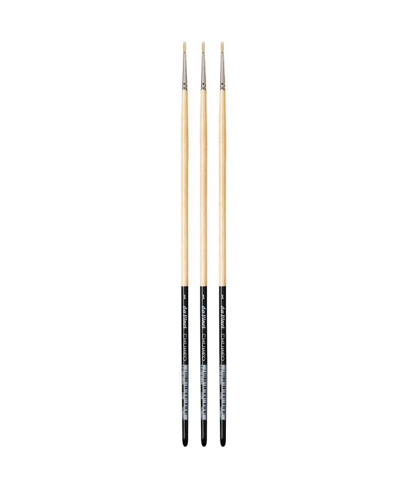 da Vinci Chuneo Synthetic Hog Bristle Brushes have been carefully developed over years to offer a high-quality synthetic alternative to Chinese Chungking bristle. This line features strong, flexible, nearly-indestructible Synthetic Hog Bristle that is easy to clean and maintains its shape even after intensive use. The perfect tool for oils, acrylics and every kind of thicker colors as well as rough surfaces. Certified green manufacturing with sustainable wood handles handmade in Germany at our family owned factory since 1890. Vegan. Sold as a pack of 3.