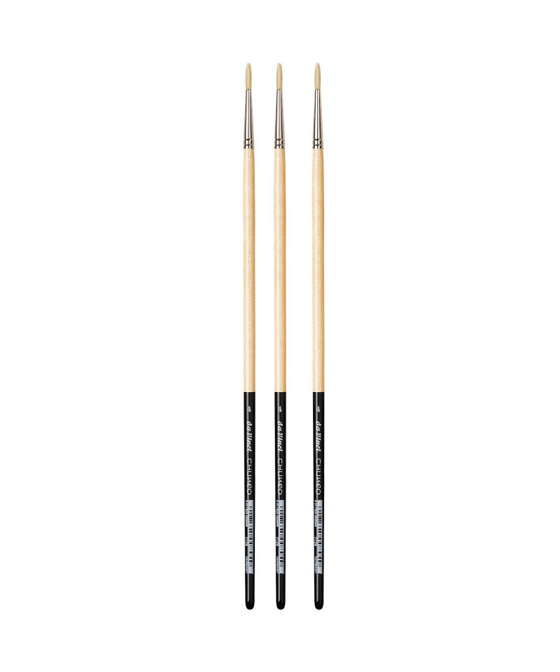 da Vinci Chuneo Synthetic Hog Bristle Brushes have been carefully developed over years to offer a high-quality synthetic alternative to Chinese Chungking bristle. This line features strong, flexible, nearly-indestructible Synthetic Hog Bristle that is easy to clean and maintains its shape even after intensive use. The perfect tool for oils, acrylics and every kind of thicker colors as well as rough surfaces. Certified green manufacturing with sustainable wood handles handmade in Germany at our family owned factory since 1890. Vegan. Sold as a pack of 3.