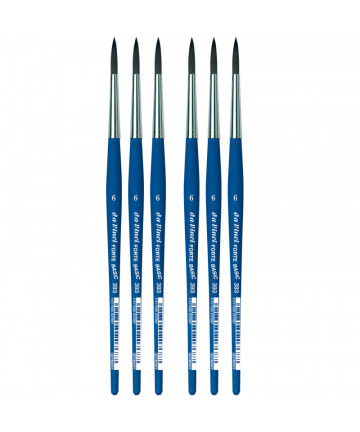 Extra strong and stiff for acrylics, oils & water-mixable oils TOP-ACRYL is constructed with 5 different diameters of extra strong Synthetic Bristle. Long handles fit right in your painting box or travel easel. Exclusive design developed by da Vinci. Extra stiff with a precise snap, and a favorite of Impasto painters (who use thick applications of paint). Whether massing color in the larger sizes or precision painting in the smaller sizes, TOP-ACRYL brushes offer the artist versatility and ruggedness. The brush features a long, natural, polished handle.