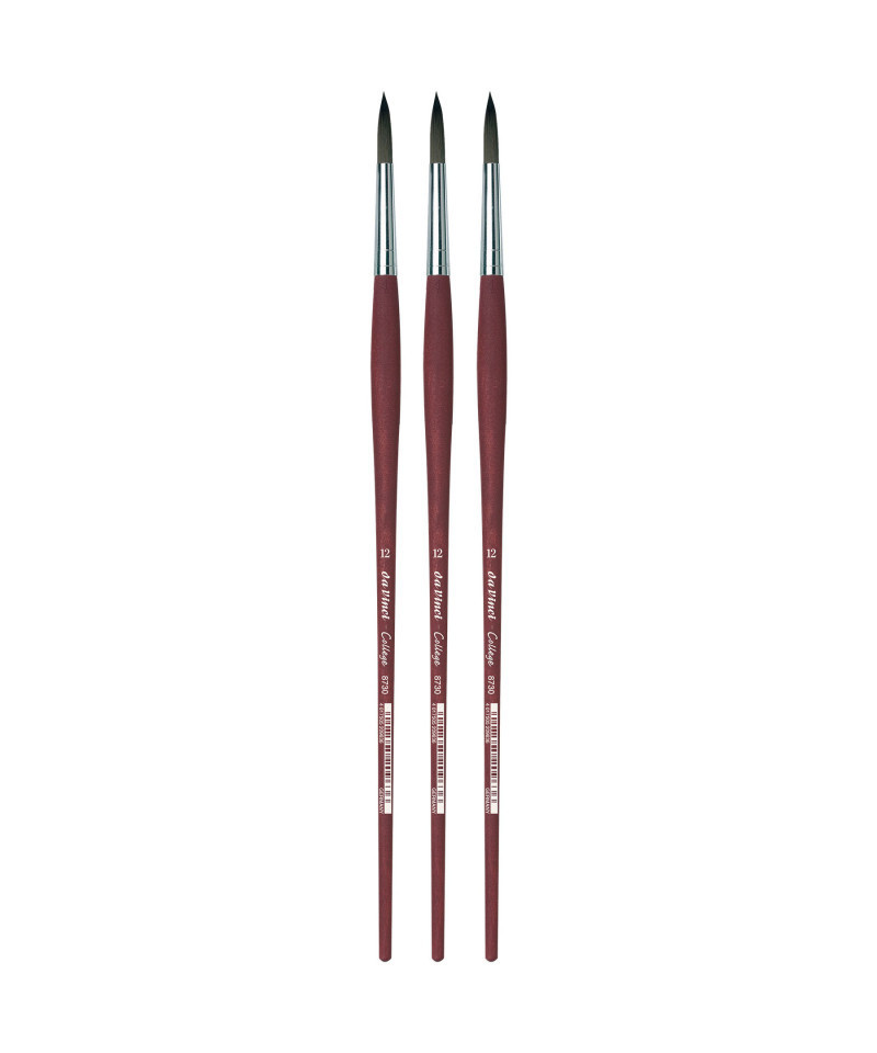 da Vinci COLLEGE Student Brush, Synthetic, Acrylic & Oil, Round, Series 8730, Size 12, Pack of 3