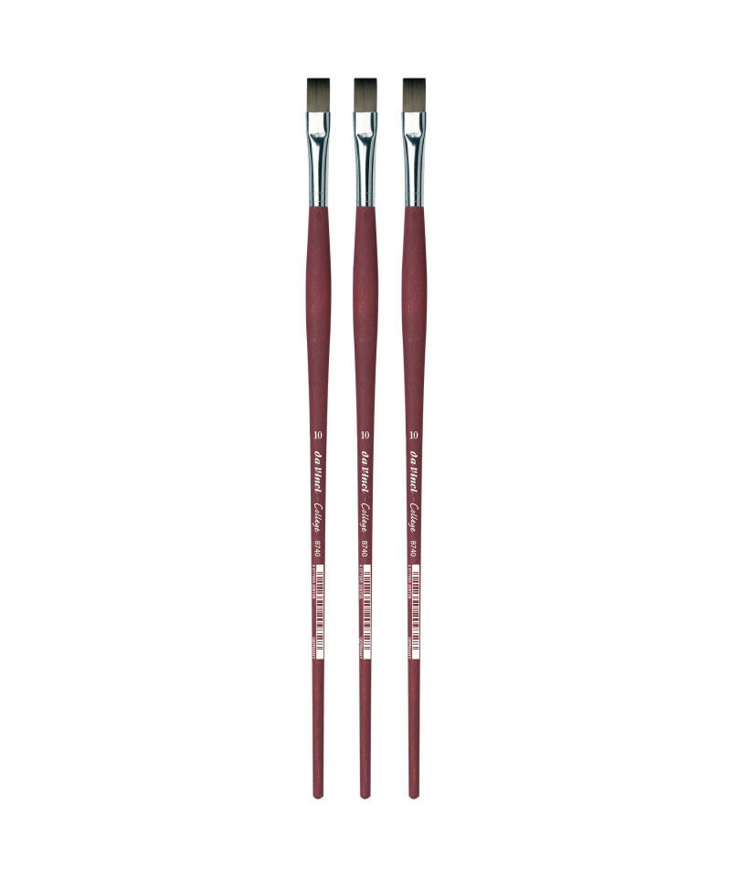 COLLEGE is da Vinci's most economical synthetic for acrylic & oil. It features a strong, elastic synthetic fiber that is easy to clean. COLLEGE has a new water-based matte lacquered handle & a seamless ferrule, rare in student brushes. COLLEGE is a higher quality, well-built brush for beginners & students. The long handles feature a non-slip surface. Certified green manufacturing with sustainable wood handles handmade in Germany at our family-owned factory since 1890. 100% Vegan. Sold as a pack of 3.