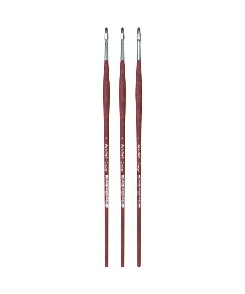 COLLEGE is da Vinci's most economical synthetic for acrylic & oil. It features a strong, elastic synthetic fiber that is easy to clean. COLLEGE has a new water-based matte lacquered handle & a seamless ferrule, rare in student brushes. COLLEGE is a higher quality, well-built brush for beginners & students. The long handles feature a non-slip surface. Certified green manufacturing with sustainable wood handles handmade in Germany at our family-owned factory since 1890. 100% Vegan. Sold as a pack of 3.