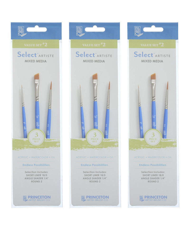 Ignite your creativity with Princeton's best-selling Select Artiste brushes, a meticulously crafted collection that brings your paintings to life. Created by Princeton's master artisans, this expansive series offers 29 distinct shapes and 108 individual styles, ensuring you have the perfect tool for every artistic endeavor. Designed with a variety of high-quality synthetic hairs, these short-handled brushes deliver exceptional performance across all painting techniques—from intricate detailing and bold blocking to smooth shading, precise lettering, and effortless washes. Durable, affordable, and reliable, Select Artiste brushes are the ideal choice for both seasoned professionals and passionate amateurs, empowering you to express your artistry with confidence and flair. Each set includes 3 brushes. Sold as 3 sets for a total of 9 brushes.