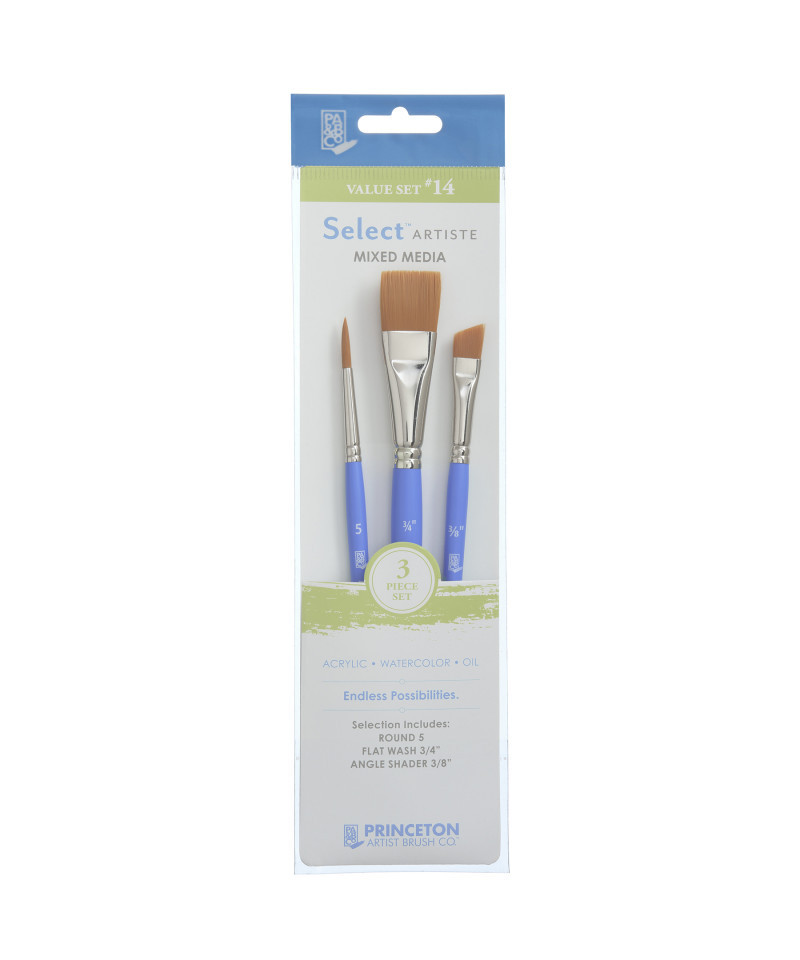 Princeton Select Artiste Brush Set No. 14, Synthetic Bristles, Short Handle Mixed Media Paintbrush, Jewel Blue, 3 Pieces