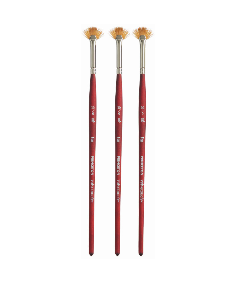 Princeton Velvetouch Fan Brush, Synthetic Bristles, Short Handle Mixed Media Paintbrush, Scarlet, Size 10/0, Pack of 3