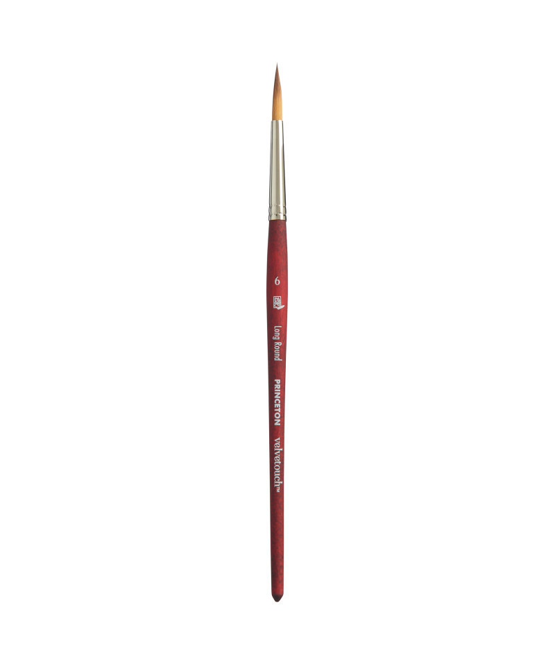 Princeton Velvetouch Long Round Brush, Synthetic Bristles, Short Handle Mixed Media Paintbrush, Scarlet, Size 6, 1 Count