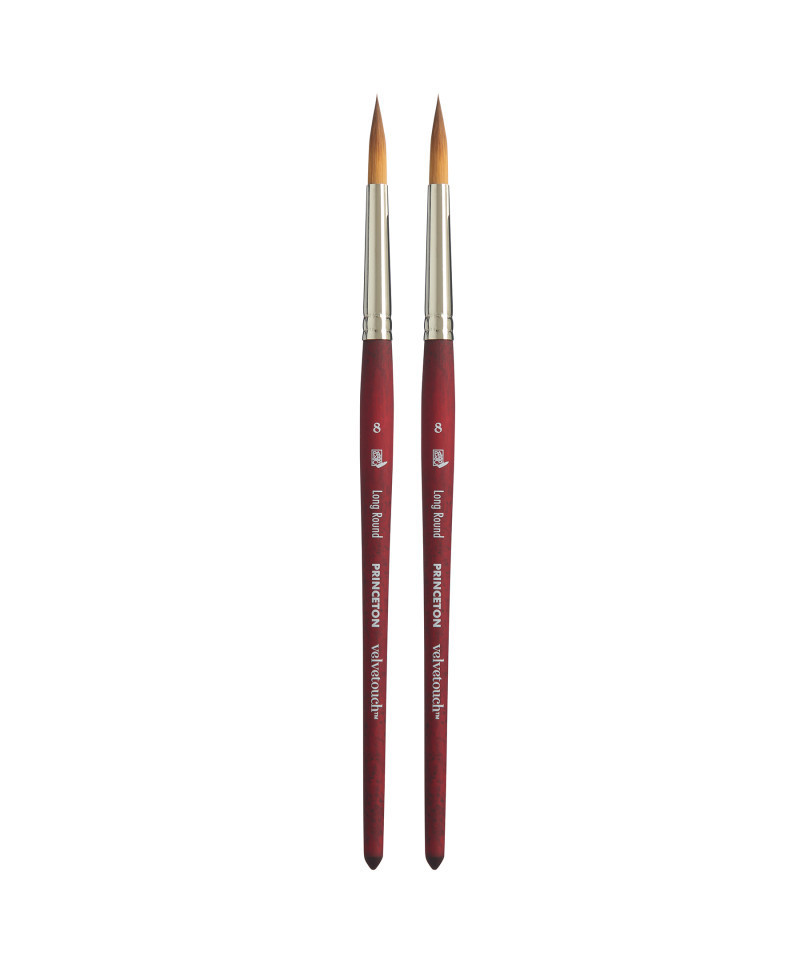 Princeton Velvetouch Long Round Brush, Synthetic Bristles, Short Handle Mixed Media Paintbrush, Scarlet, Size 8, Pack of 2