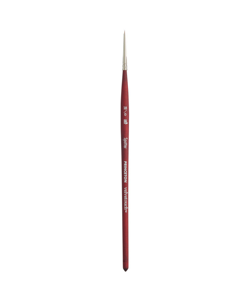 Princeton Velvetouch Spotter Brush, Synthetic Bristles, Short Handle Mixed Media Paintbrush, Scarlet, Size 18/0, 1 Count