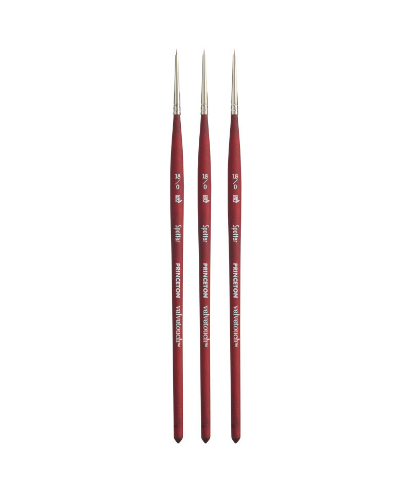 Princeton Velvetouch Spotter Brush, Synthetic Bristles, Short Handle Mixed Media Paintbrush, Scarlet, Size 18/0, Pack of 3