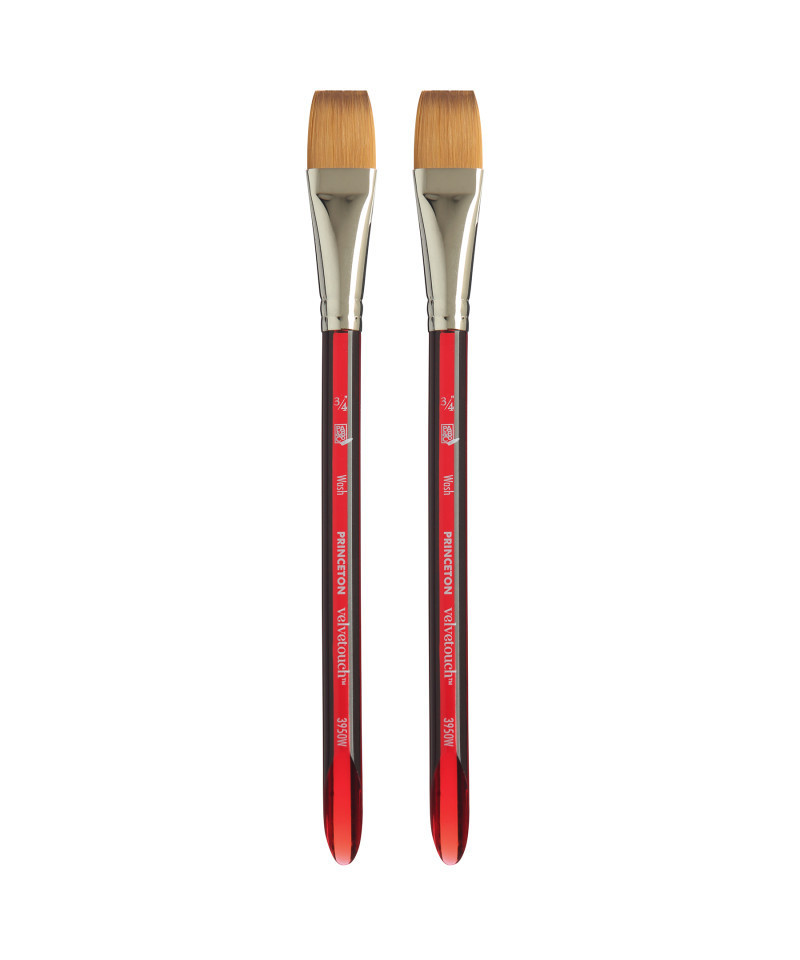 Princeton Velvetouch Wash Brush, Synthetic Bristles, Short Handle Mixed Media Paintbrush, Scarlet, Size 3/4 inch, Pack of 2