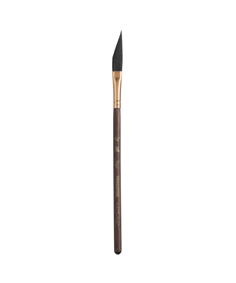 Princeton Neptune Dagger Brush, Synthetic Bristles, Short Handle Watercolor Paintbrush, Dark Wood, Size 3/8 inch, 1 Count