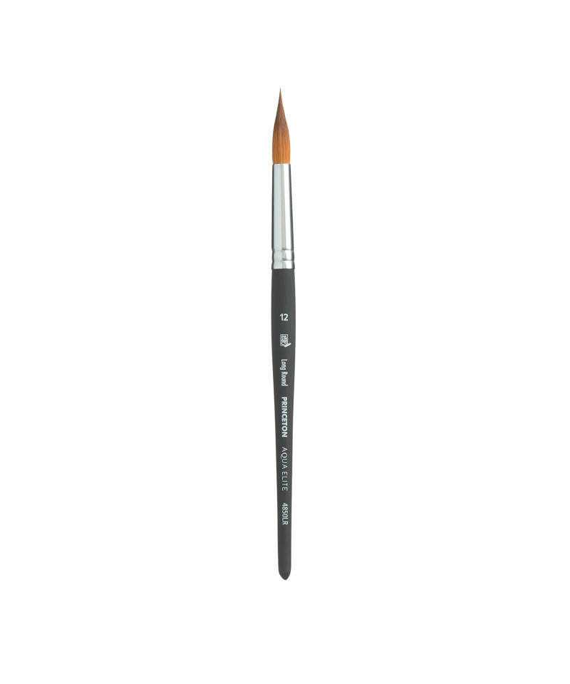 Princeton Aqua Elite Long Round Brush, Synthetic Bristles, Short Handle Watercolor Paintbrush, Matte Black, Size 12, 1 Count