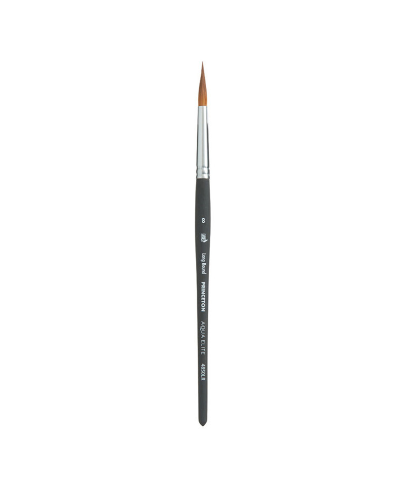 Princeton Aqua Elite Long Round Brush, Synthetic Bristles, Short Handle Watercolor Paintbrush, Matte Black, Size 8, 1 Count