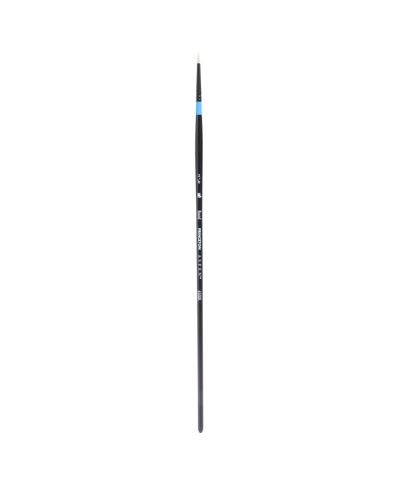 Princeton Aspen Round Brush, Synthetic Bristles, Long Handle Acrylic & Oil Paintbrush, Black, Size 2/0, 1 Count