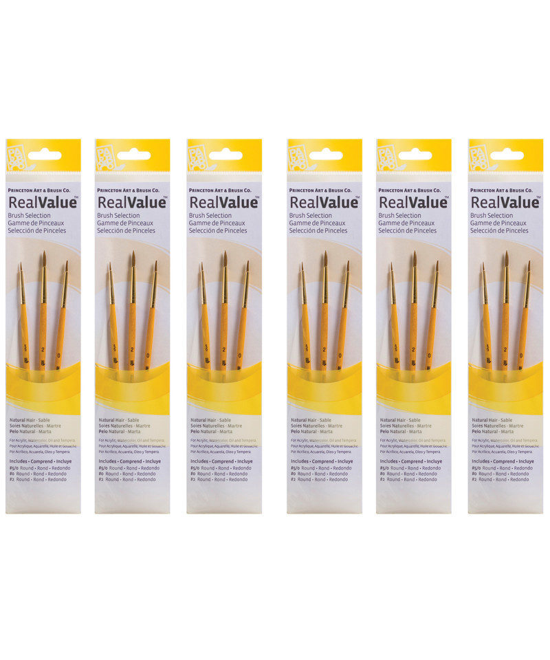 Princeton Artist Co. proudly presents the RealValue paintbrush collection—a curated series of meticulously selected brush sets that cater to every artistic need. Whether you prefer short-handle or long-handle styles, natural, synthetic, or a blend of bristles, the RealValue collection offers an unparalleled range of shapes and sizes. Designed to meet the demands of artists across all mediums—acrylic, watercolor, tempera, and oil—these brushes deliver exceptional mixed media performance at an incredible value. With RealValue, you'll find the perfect brush set to elevate your craft, whether you're just beginning or are a seasoned professional. Each set includes 3 brushes. Sold as 6 sets for a total of 18 brushes.