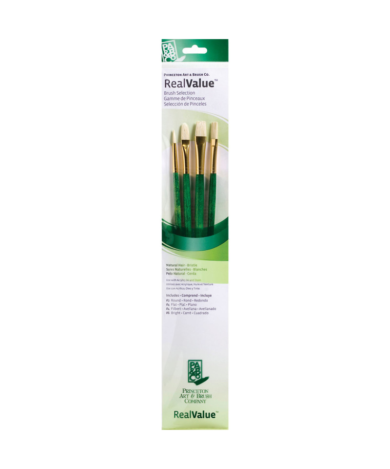 Princeton Artist Co. proudly presents the RealValue paintbrush collection—a curated series of meticulously selected brush sets that cater to every artistic need. Whether you prefer short-handle or long-handle styles, natural, synthetic, or a blend of bristles, the RealValue collection offers an unparalleled range of shapes and sizes. Designed to meet the demands of artists across all mediums—acrylic, watercolor, tempera, and oil—these brushes deliver exceptional mixed media performance at an incredible value. With RealValue, you'll find the perfect brush set to elevate your craft, whether you're just beginning or are a seasoned professional.