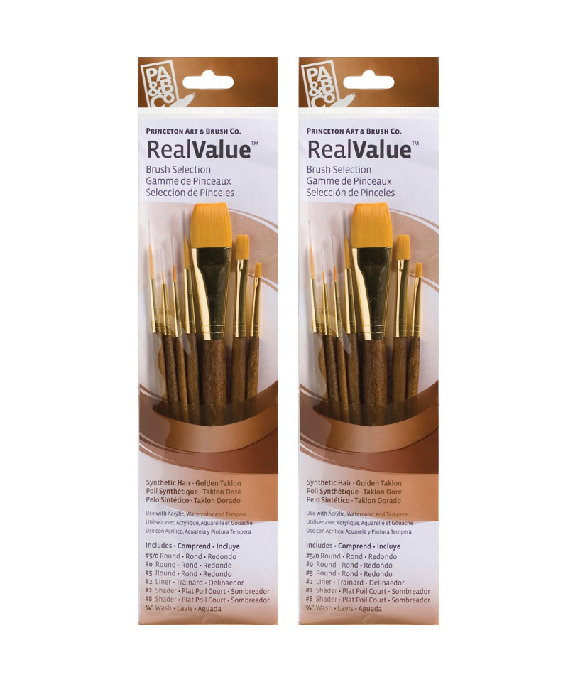Princeton Artist Co. proudly presents the RealValue paintbrush collection—a curated series of meticulously selected brush sets that cater to every artistic need. Whether you prefer short-handle or long-handle styles, natural, synthetic, or a blend of bristles, the RealValue collection offers an unparalleled range of shapes and sizes. Designed to meet the demands of artists across all mediums—acrylic, watercolor, tempera, and oil—these brushes deliver exceptional mixed media performance at an incredible value. With RealValue, you'll find the perfect brush set to elevate your craft, whether you're just beginning or are a seasoned professional. Each set includes 7 brushes. Sold as 2 sets for a total of 14 brushes.