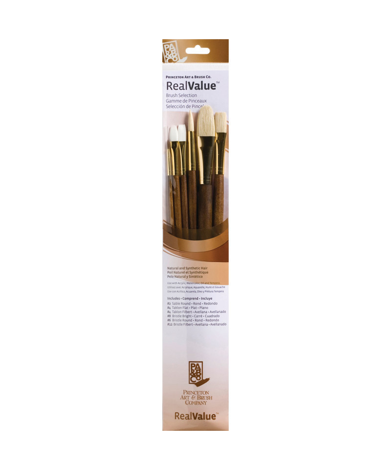 Princeton Artist Co. proudly presents the RealValue paintbrush collection—a curated series of meticulously selected brush sets that cater to every artistic need. Whether you prefer short-handle or long-handle styles, natural, synthetic, or a blend of bristles, the RealValue collection offers an unparalleled range of shapes and sizes. Designed to meet the demands of artists across all mediums—acrylic, watercolor, tempera, and oil—these brushes deliver exceptional mixed media performance at an incredible value. With RealValue, you'll find the perfect brush set to elevate your craft, whether you're just beginning or are a seasoned professional.