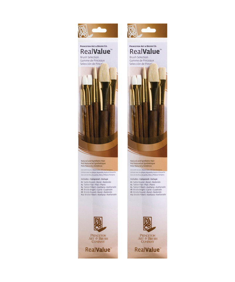 Princeton Artist Co. proudly presents the RealValue paintbrush collection—a curated series of meticulously selected brush sets that cater to every artistic need. Whether you prefer short-handle or long-handle styles, natural, synthetic, or a blend of bristles, the RealValue collection offers an unparalleled range of shapes and sizes. Designed to meet the demands of artists across all mediums—acrylic, watercolor, tempera, and oil—these brushes deliver exceptional mixed media performance at an incredible value. With RealValue, you'll find the perfect brush set to elevate your craft, whether you're just beginning or are a seasoned professional. Each set includes 6 brushes. Sold as 2 sets for a total of 12 brushes.