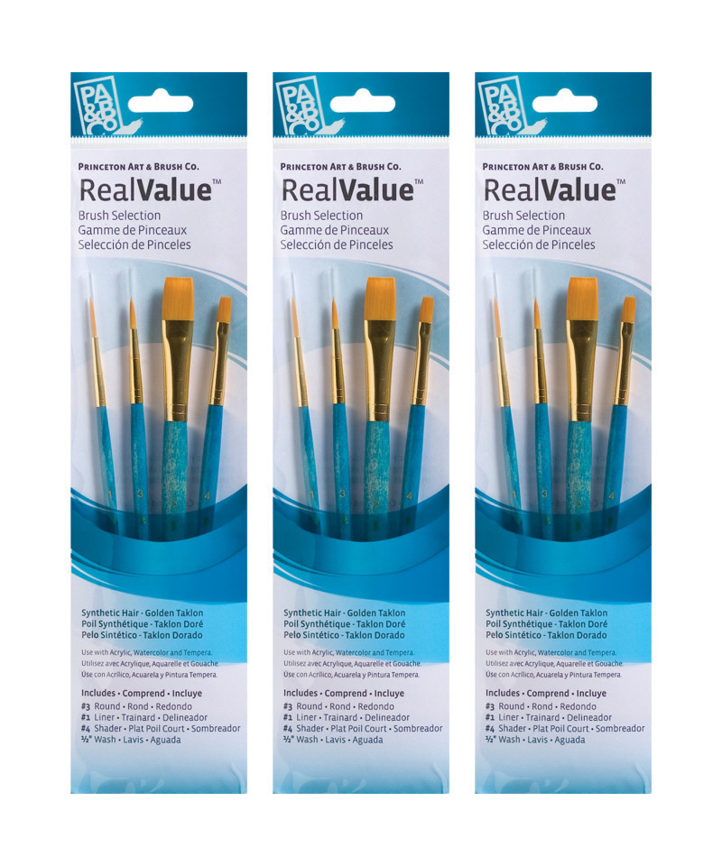 Princeton Artist Co. proudly presents the RealValue paintbrush collection—a curated series of meticulously selected brush sets that cater to every artistic need. Whether you prefer short-handle or long-handle styles, natural, synthetic, or a blend of bristles, the RealValue collection offers an unparalleled range of shapes and sizes. Designed to meet the demands of artists across all mediums—acrylic, watercolor, tempera, and oil—these brushes deliver exceptional mixed media performance at an incredible value. With RealValue, you'll find the perfect brush set to elevate your craft, whether you're just beginning or are a seasoned professional. Each set includes 4 brushes. Sold as 3 sets for a total of 12 brushes.
