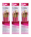 Princeton RealValue Brush Set, Natural Bristles, Short Handle Mixed Media Paintbrush, Pink, 4 Per Set, 3 Sets