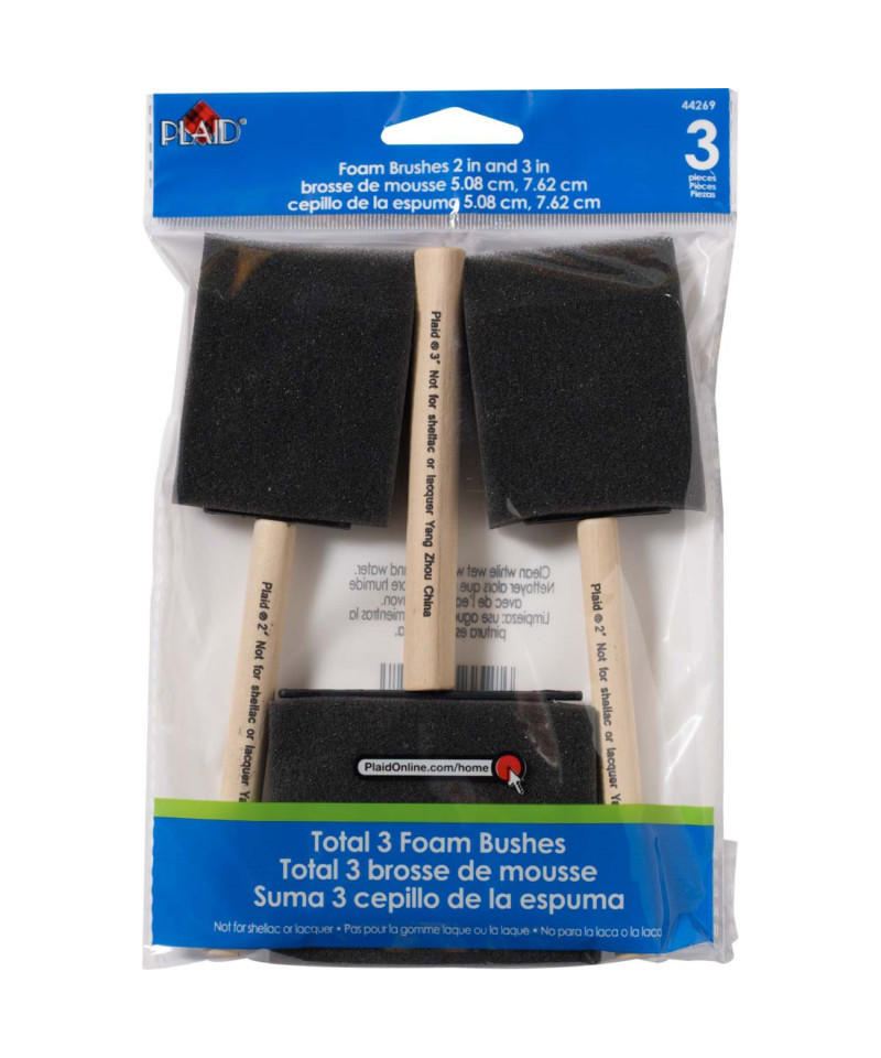Apply a smooth layer of paint, stain, or varnish using the Plaid Foam Paint Brush Set. This 3-piece paint brush set is a classic addition to any crafter's art supplies. Each paint brush has a wood handle and a 2″ and 3" foam applicator. These superior-quality foam brushes can be used on everything from home decor projects to smaller paper crafts and so much more. Add the Plaid Foam Paint Brush Set to your painting tools and love the coverage and durability each paint brush provides.