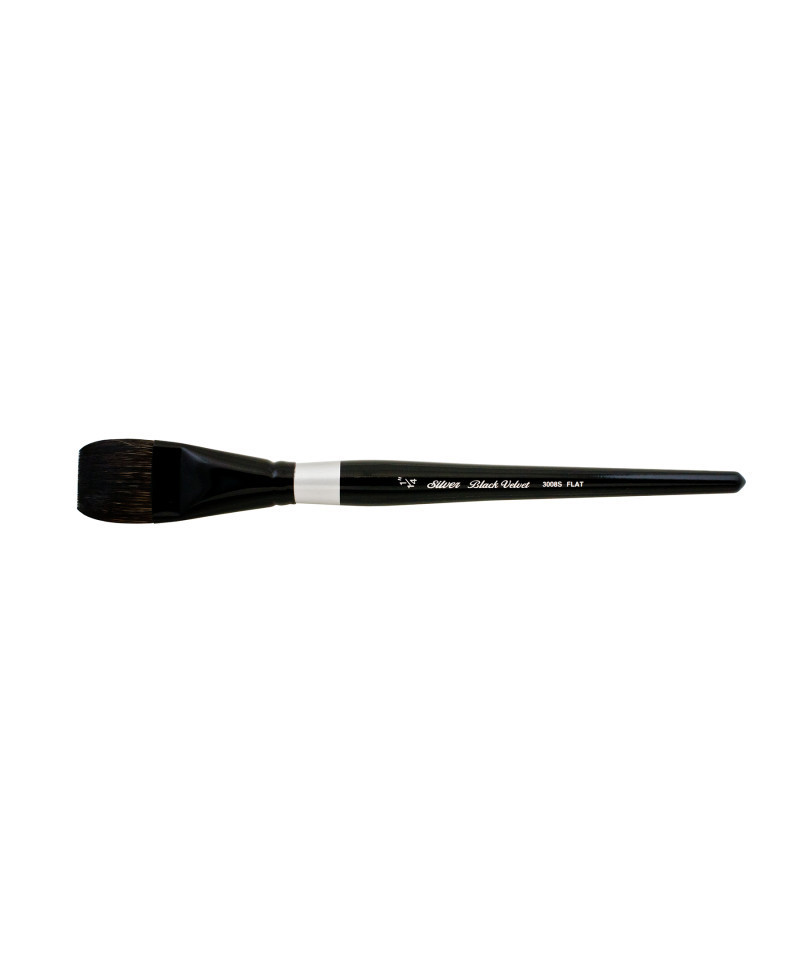 The Silver Brush Black Velvet brushes were created for watercolor artists and skilled hobbyists. Each Black Velvet brush is soft enough to add color without disturbing previous layers but firm enough to lift color when needed. Silver Brush Black Velvet professional watercolor brushes are expertly crafted with a luxurious blend of squirrel hair and black synthetic fibers. Each brush has a short handle that is finished with sophisticated black lacquer. Artists prefer to use the 3008S square wash brush for backgrounds, leaves, and landscapes. Sizes 1/4" to 1" have beveled, acrylic handles for scraping, while sizes 1 1/4" to 1 1/2" have wooden handles. Silver Brush Black Velvet brushes are best paired with watercolor. Each brush will hold the right amount of color, giving you more time to focus on your masterpiece. Watch your ethereal creations come to life with Silver Brush premium-quality brushes.