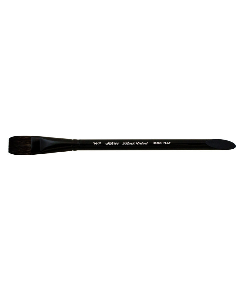 The Silver Brush Black Velvet brushes were created for watercolor artists and skilled hobbyists. Each Black Velvet brush is soft enough to add color without disturbing previous layers but firm enough to lift color when needed. Silver Brush Black Velvet professional watercolor brushes are expertly crafted with a luxurious blend of squirrel hair and black synthetic fibers. Each brush has a short handle that is finished with sophisticated black lacquer. Artists prefer to use the 3008S square wash brush for backgrounds, leaves, and landscapes. Sizes 1/4" to 1" have beveled, acrylic handles for scraping, while sizes 1 1/4" to 1 1/2" have wooden handles. Silver Brush Black Velvet brushes are best paired with watercolor. Each brush will hold the right amount of color, giving you more time to focus on your masterpiece. Watch your ethereal creations come to life with Silver Brush premium-quality brushes.