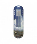 Silver Brush Bristlon product line was created for artists who use acrylic or oil paint. Each brush has excellent paint-holding capabilities and creates textured strokes on painting surfaces. This line offers stiff brushes with crisp edges. Silver Brush Bristlon acrylic and oil artist brushes are expertly crafted with a luxurious synthetic blend that imitates hog bristle. Each brush has a long wooden handle finished with an elegant nickel-plated brass ferrule that will not rust. This kit includes the Bristlon round, flat, bright, and filbert brushes, all in size 6. These brushes are ideal for line work, backgrounds, abstract designs, and rounded shapes. Long-handled brushes are best for easel painting. Each Bristlon synthetic brush is best paired with acrylic or oil paint. Silver Brush professional-grade acrylic brushes are designed to hold maximum color and are extremely durable. Enjoy watching your textured colors come to life.