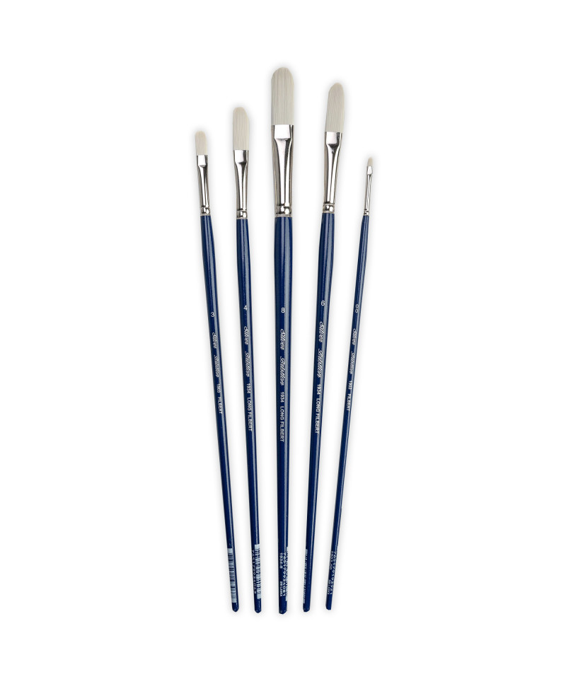 Use Bristlon® filbert brushes for botanical shapes, details of the human form, and portraiture. Use on any surface and substrate including canvas, paper, furniture, fresco murals and so much more. Bristlon® fine artist brushes feature multi-diameter synthetic filaments that carry heavy bodied acrylic paints effortlessly across your painting surface. This series is stiff, durable and snappy with fine points and chiseled edges for crisp, clean strokes. Bristlon® series are rugged enough to withstand rough treatment on textured surfaces. These brushes imitate natural hog bristle, so expect textured strokes and excellent paint carrying capacity. Bristlon® series brushes are handmade by expert artisans who undergo extensive training before they are skilled enough to produce the kind of quality that has become synonymous with Silver Brush Limited. These brushes imitate natural hog bristle, so expect textured strokes and excellent paint carrying capacity. Bristlon® series brushes are handmade by expert artisans who undergo extensive training before they are skilled enough to produce the kind of quality that has become synonymous with Silver Brush Limited. Paint Type: oils, acrylics, watercolors, tempera, artist painting, detail painting, craft art painting, models, all water media.