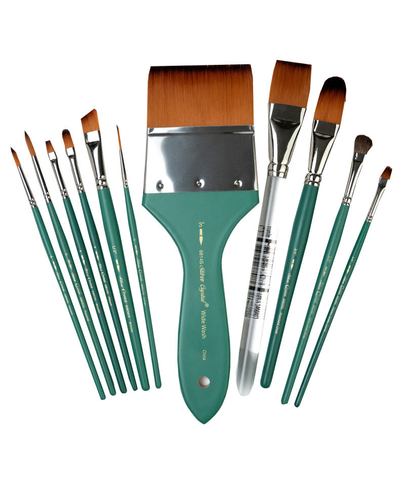 - Crystal™ synthetic brushes add durability and spring to each painting stroke. Crystal™ artist brushes are made to exacting detail.